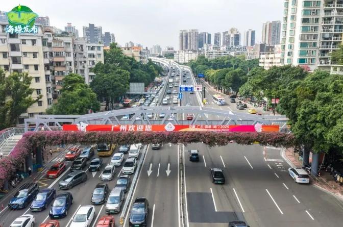 随着十五运会开幕进入冲刺阶段,广州全城换装迎全运,以“点线面”立体布局掀起氛围营造热潮,道旗、横幅、景观小品与全民健身活动交相辉映,让全运气息渗透城市肌理,实现“抬头可见、驻足可观、全面可感”的宣传效果。