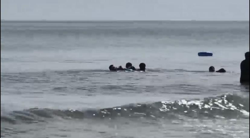 在近海滩的位置,邓俊德下水负责接应大家,合力将溺水者一起托举上岸。大家将两名溺水男童拉上岸后,其中一名男童晕倒在海滩上,不省人事。男童的爷爷为其进行心肺复苏。经过一轮抢救后,他才吐出口中杂物,逐渐恢复意识。