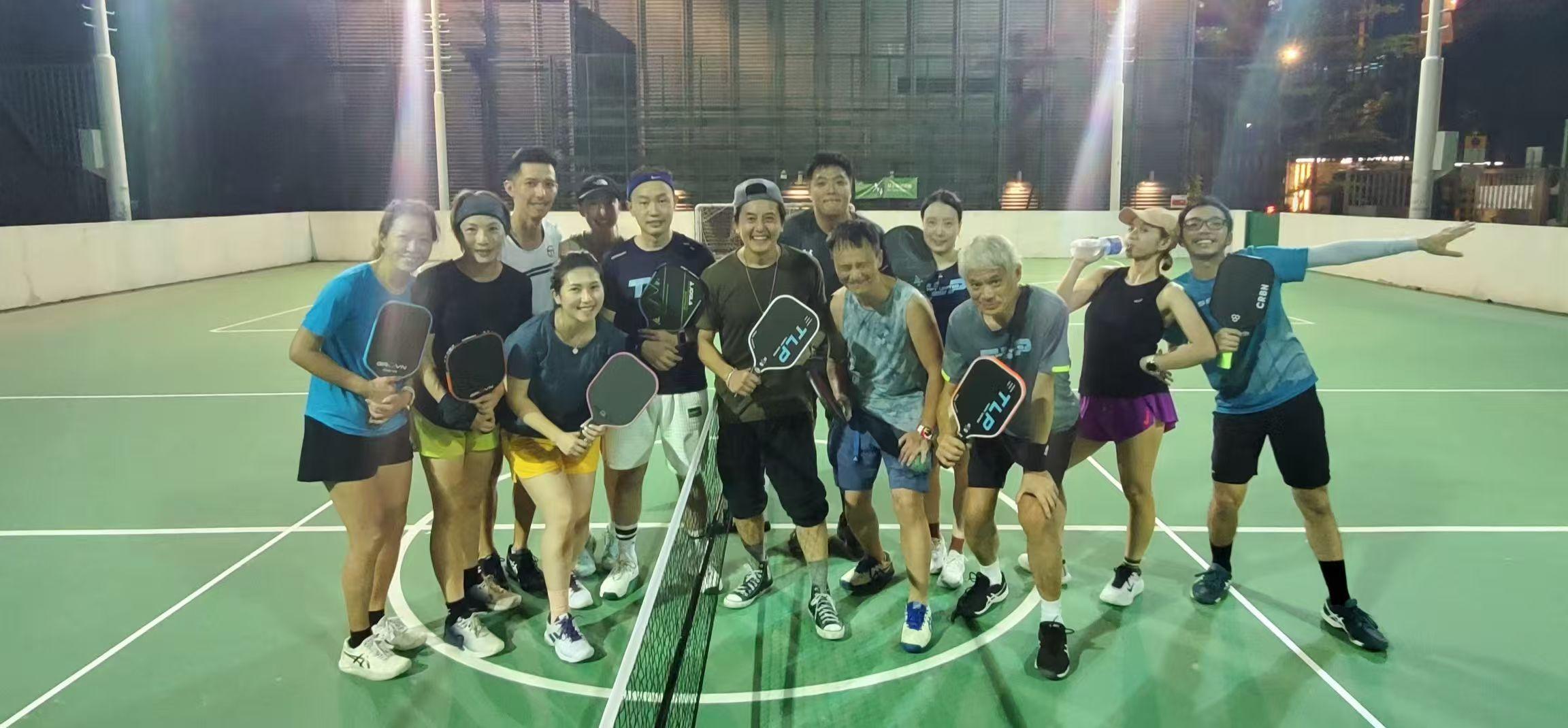Jesss最初是在国外接触到匹克球,这项被比喻成“拿着乒乓球拍在羽毛球场上打网球”的新兴运动,门槛低且有趣好玩,让她迅速“上头”。她开始和丈夫在香港订场地练球,但香港匹克球场数量少,每次要30个人轮流打。
