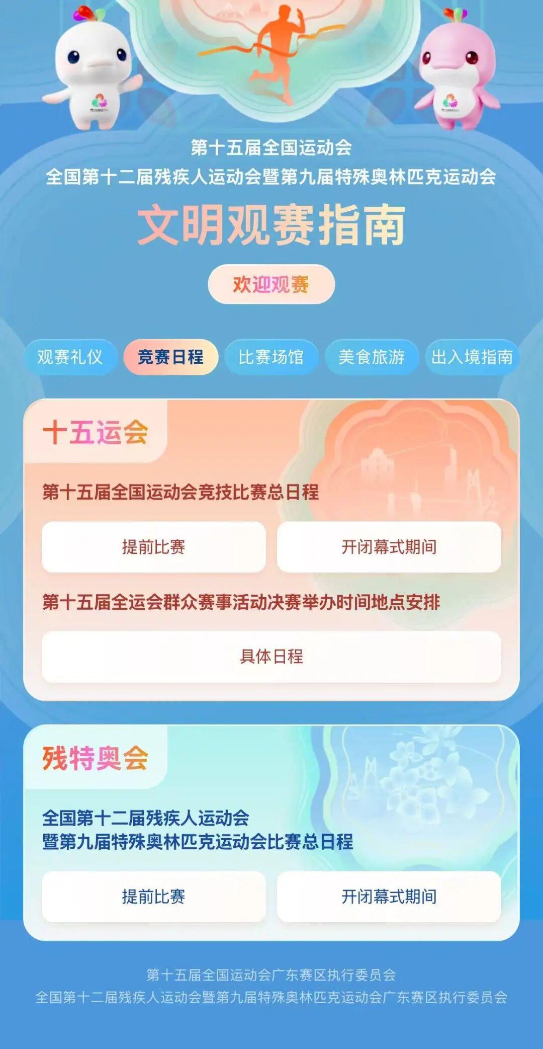“竞赛日程”对十五运会和残特奥会的比赛日程进行划分,清晰明了。