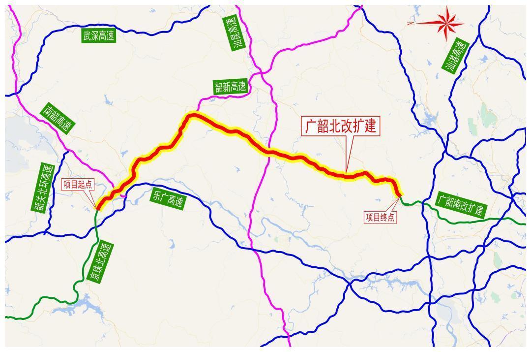 为进一步满足人民群众美好出行的需求,广韶高速分段推进改扩建。2023年9月,广韶高速佛冈至太和段改扩建工程(即“广韶高速改扩建项目南段”)率先启动,全长72.6公里,由双向六车道扩建为双向十车道,计划于2027年建成通车。广韶高速北段改扩建项目起于韶关市武江区西联镇,途经浈江区、曲江区、翁源县和清远市英德市、佛冈县,终于佛冈县石角镇,顺接广韶高速改扩建项目南段,全长125.6公里。全线设桥梁123座,隧道4座,互通立交12处,服务区3对,计划于2029年全面建成通车。