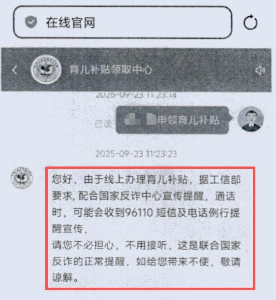 1. 收到“领取育儿补贴”的网址链接或二维码时,一定要提高警惕,不要随意点击陌生链接,谨防上当受骗。