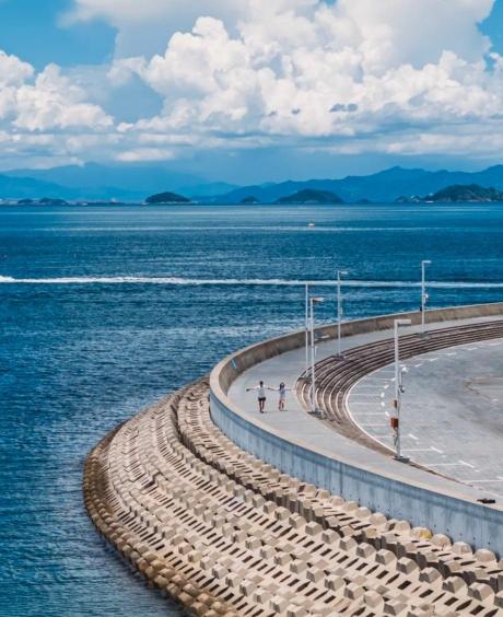 走到在中英街的尽头,可以收获一段绝美海景的海滨栈道。眼前是蔚蓝静谧的大海和繁忙的盐田港,对岸则是香港的青山。