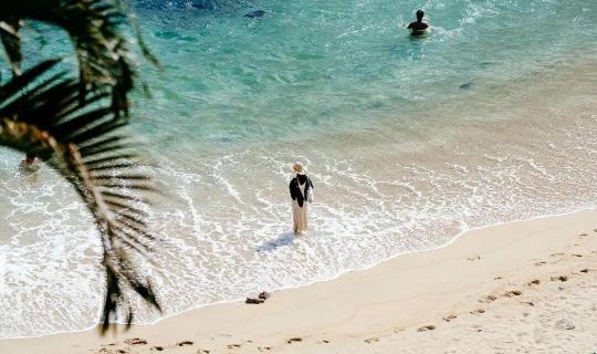 眺望蔚蓝大海,脚踩柔软沙滩,沐浴灿烂阳光,沿着漫长的海岸线走走逛逛,感受海风吹过发梢,一切温柔而美好。