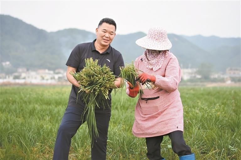 秋日午后的梅州市蕉岭县新铺镇同福村,千亩粤港澳大湾区菜篮子基地里绿浪翻滚。“以前村里的地都撂荒了,现在流转出去每年有租金,在基地干活,每天还能挣120元,日子越过越红火。”村民曾姨笑着告诉记者。