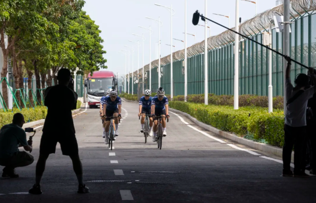 有经验的运动员会采取梯队骑行的方式减少风阻,这也是观赛的一大看点——观察选手如何在大桥开阔路段组织队形、轮流破风。