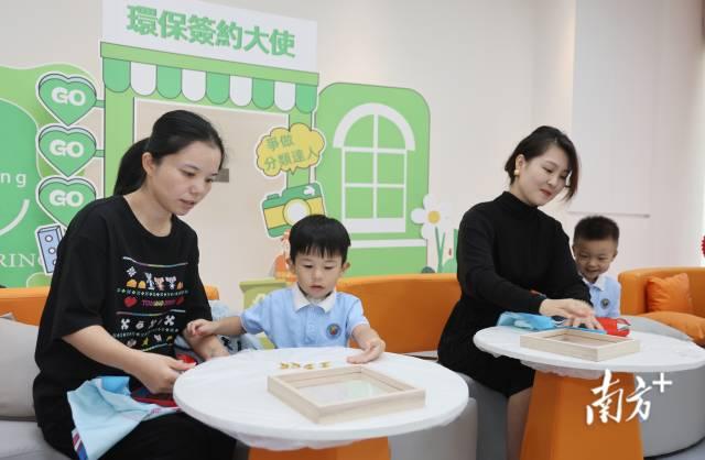 在横琴“澳门新街坊”家庭社区服务中心,居民在进行亲子游戏。