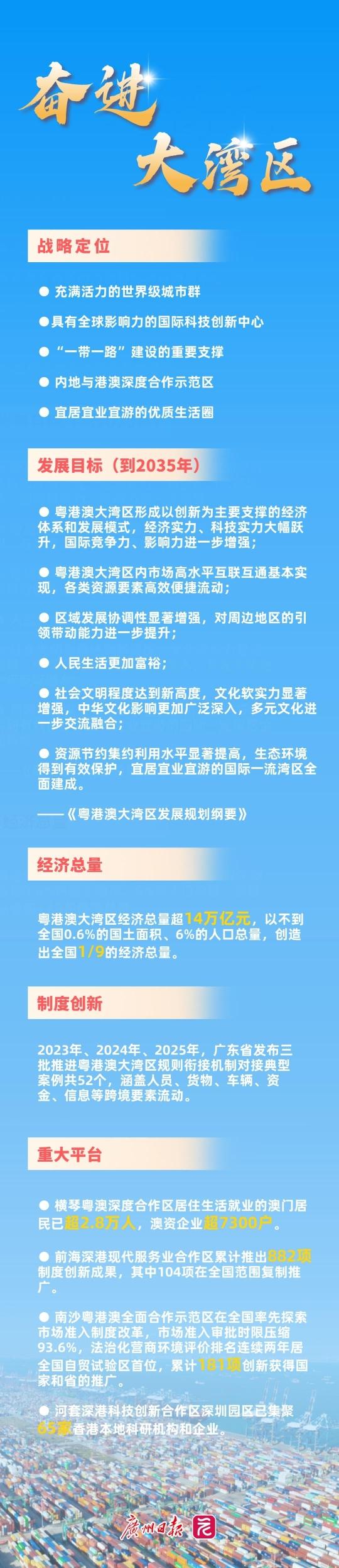 如今,粤港澳大湾区建设已迈入纵深推进新阶段,向着“世界级的大湾区、发展最好的湾区”前行,为中国式现代化书写更具活力的湾区答卷。