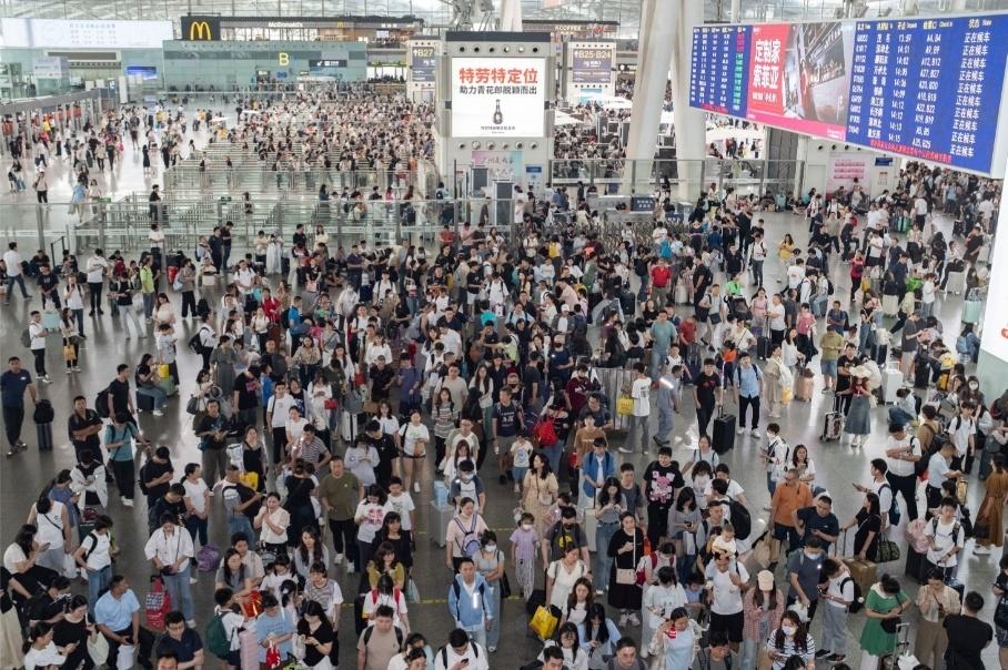 人来人往的广州南站,繁忙时每50多秒就有一趟列车进出。今年国庆中秋假期,广州南站单日到发、发送、到达旅客最高分别达到92.2万人次、53.4万人次、50.9万人次,连破3项纪录。未来广湛高铁开通后广州到湛江最快仅需1.5小时,广州站至广州南站联络线建成后,深港、珠澳方向高铁可直达广州站,跨城通勤更便捷。