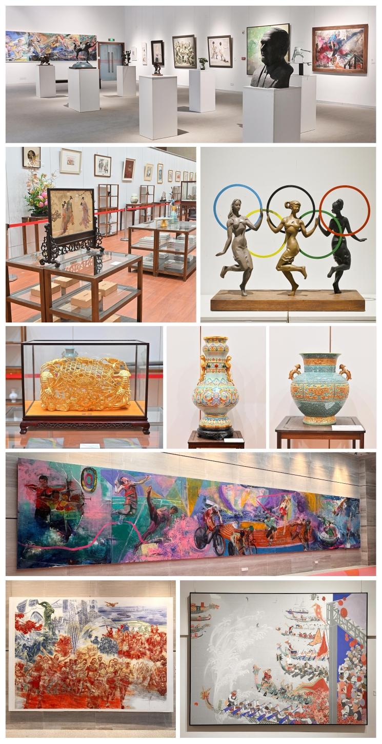 本次艺术展由中央广播电视总台联合广东省美术家协会、广东画院、广州画院、广州美术学院等单位共同主办,以“体育与艺术交融”为命题,特邀全国当代艺术名家创作体育主题作品及非遗佳作150余件(套),涵盖中国画、油画、版画、雕塑、综合材料绘画与非遗作品等多个艺术门类。通过笔墨丹青勾勒出体育盛会的精彩图景,向世界传递十五运会“绿色、共享、开放、廉洁”的办赛理念,展现体育文化的澎湃活力,彰显粤港澳大湾区的城市品格与岭南文化的深厚底蕴。