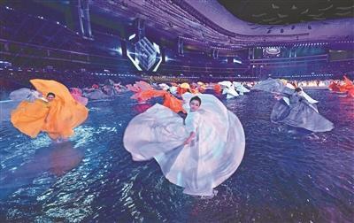 “水舞台”对表演者的服装面料有特殊要求。 新华社发
