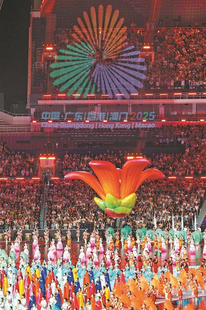 一场盛会,绘出最大同心圆。以水为脉、以圆为形的开幕式,将粤港澳三地紧紧相连,更以文化为纽带,凝聚起海内外中华儿女的共同情感。沉浸在全运会开幕式的热烈氛围中,港澳与侨界嘉宾们深刻感受到粤港澳三地血浓于水的亲情,深刻体会到海外游子与祖国心手相牵的联结。感动之余,他们更添信心,共盼未来。