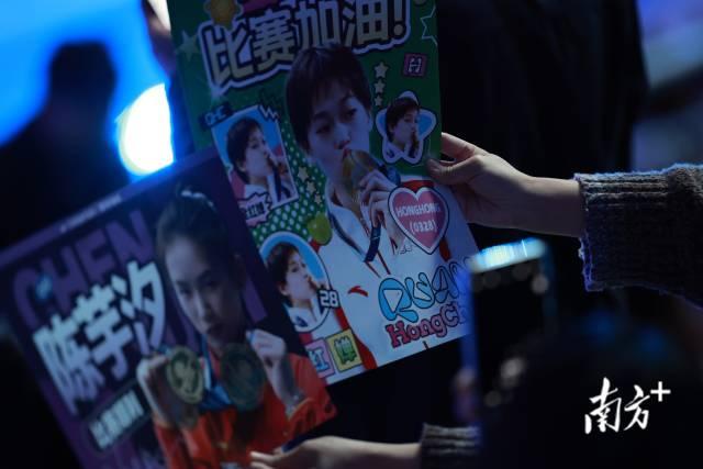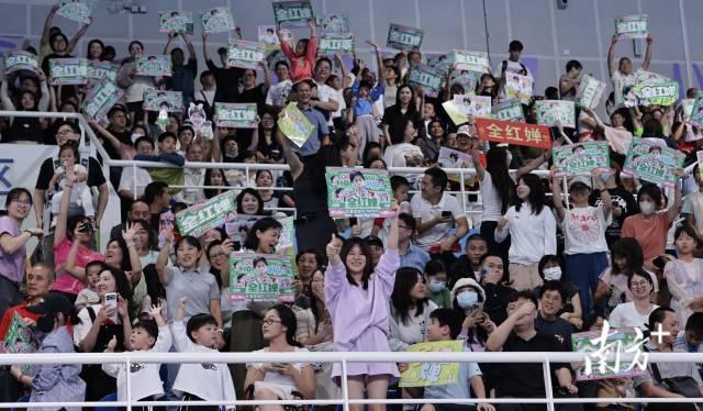 11月2日,观众席上,全红婵粉丝们到比赛现场为她加油鼓劲。
