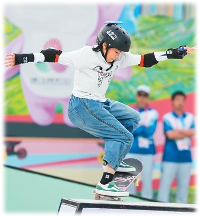 上海队选手徐琳泷在滑板比赛中。新华社记者 刘 坤摄