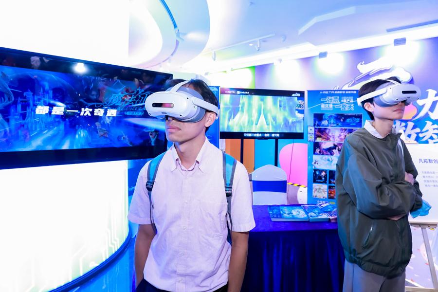 文化科技区带来全感VR体验,营造冰雪幻境的震撼效果;非遗产业区集中展示“墩头蓝”纺织技艺、雷州仿生菠萝窑陶瓷等传统工艺,多位技能大师现场展出西村窑制瓷、陶瓷微书、面塑、蛋雕等绝活;电影空间区以粤产电影海报为线索,勾勒广东影视创作的发展脉络;潮玩IP区集结四喜财神、十五运会吉祥物“喜洋洋”“乐融融”等本土原创IP,构建年轻人热衷的打卡互动空间;动漫游戏区聚焦粤产内容创新,打造融合本土基因与潮流元素的沉浸式体验场景。
