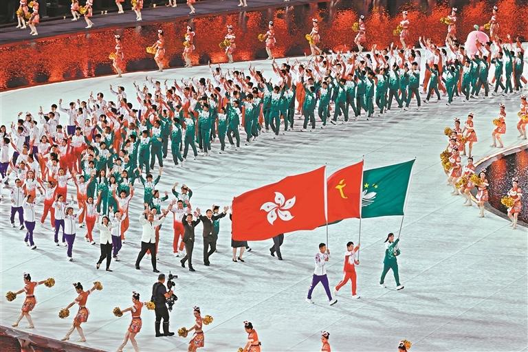 十五运会开幕式上,粤港澳三地运动员入场