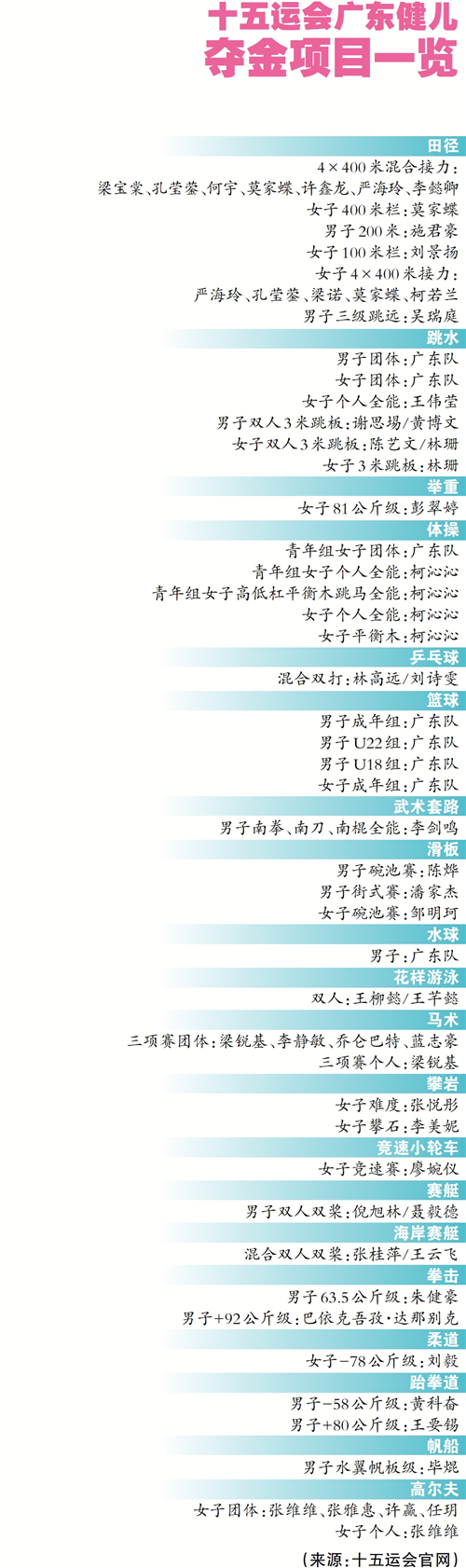 广东健儿夺金一览