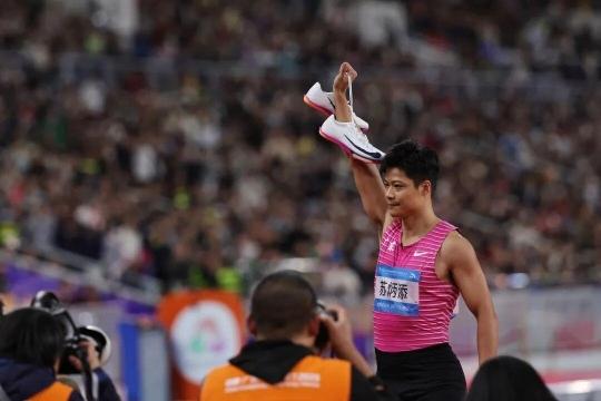11月20日,十五运会田径比赛在广东奥体中心收官,其中最受瞩目的就是男子4×100米接力决赛,36岁的“亚洲飞人”苏炳添上演“最后一舞”,广东队以38秒71获得第四名,“苏神”遗憾地与奖牌擦肩而过,但完赛后苏炳添绕场一周向观众致意,43000多名观众齐唱《讲不出再见》。发表退役感言之后,苏炳添正式挂靴。