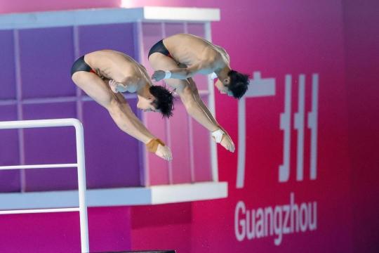 跳水比赛在十五运会开幕式前就掀起高潮,东道主广东队独揽6金领跑群雄,而湖北队创历史佳绩展现实力。其中,谢思埸、陈艾森两位奥运会冠军领衔,广东跳水队实现男子团体的8连冠,但凡全运会跳水比赛设置了男子团体项目,广东队从未让金牌旁落。谢思埸也成为十五运会广东代表团开幕式旗手,陈艾森在十五运会开幕式上作为运动员代表领誓,他也在本届十五运会上宣布退役。此外,火爆跳水赛场的全红婵说“我很棒”,王宗源和陈芋汐的独领风骚,练俊杰在男子全能和10米台比赛中均战胜曹缘,女子3米板陈艺文、林珊、陈佳“神仙打架”,还有男、女10米台上小小将们向名将发起冲击,都给大家留下了深刻印象。
