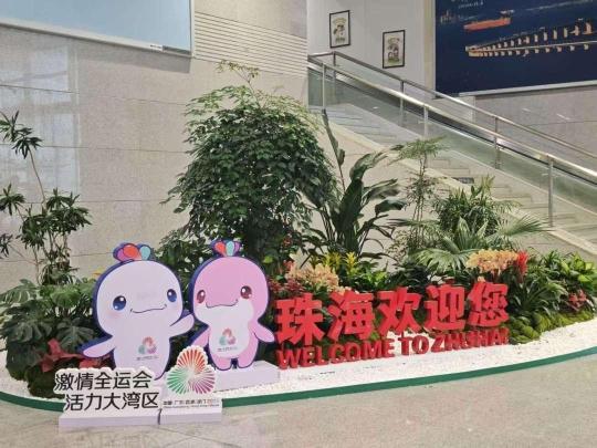 为营造浓厚的全运氛围,珠海站在候车室新增30盆绿植,为候乘空间增添一分清新雅致。在进出站口、候车大厅等核心区域张贴32张十五运会宣传海报,精心布置3处吉祥物打卡点,成为旅客出行途中的“网红地标”。同时,候车区展出了11块珠海非物质文化遗产展板,旅客可在候乘间隙感受珠澳文化底蕴,实现赛事氛围与城市魅力的双向奔赴。