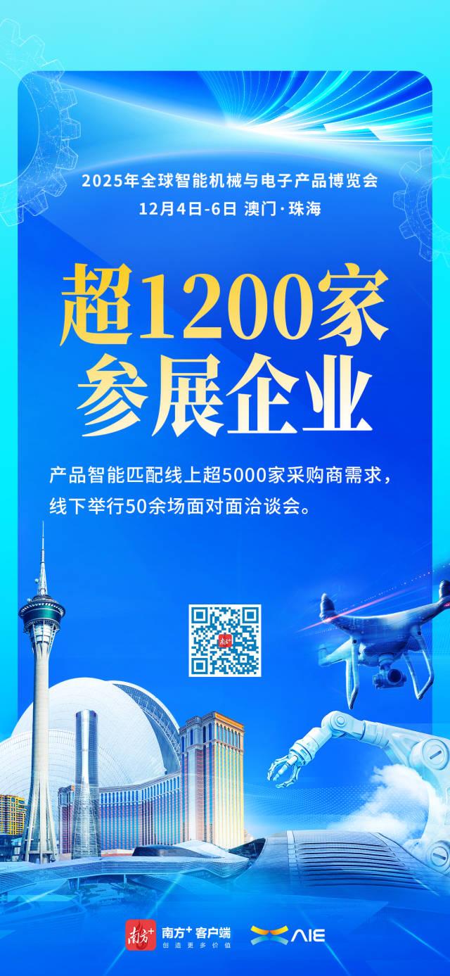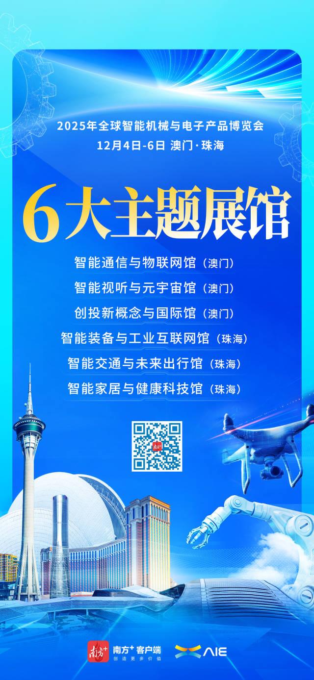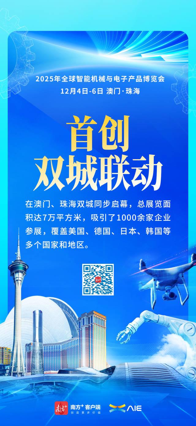 12月4日至6日,2025全球智能机械与电子产品博览会(AIE)将在澳门与珠海双城启幕。