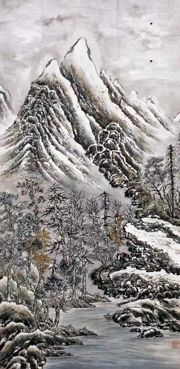 何香凝《枫林雪景》中国画 134cm×68cm 何香凝美术馆藏