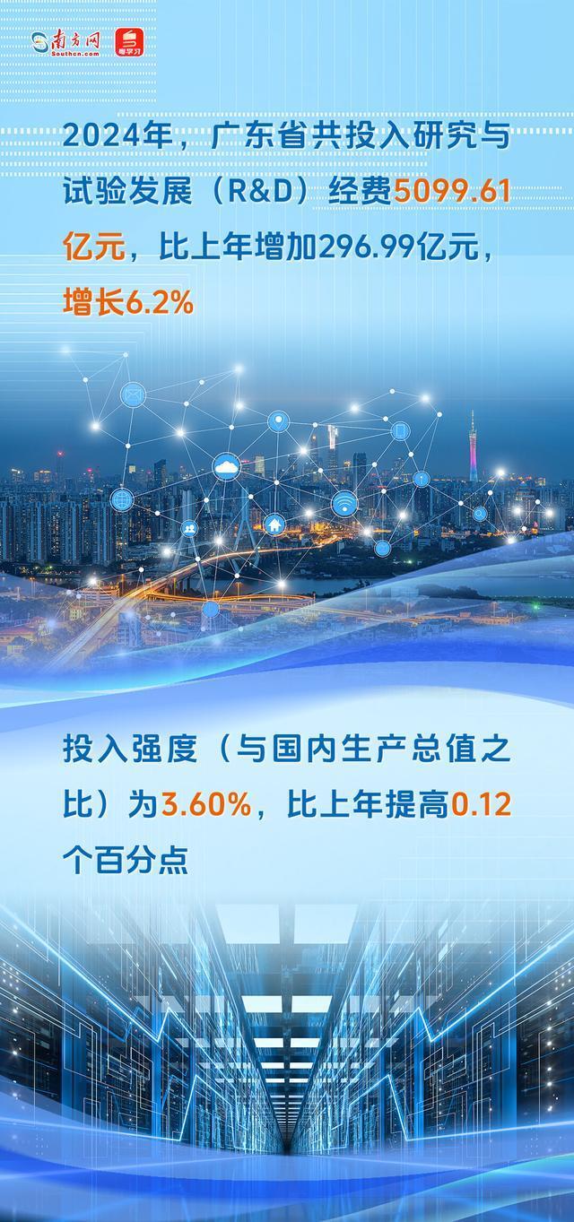 据“广东统计”微信公众号消息,11月25日,2024年广东省科技经费投入统计公报发布。据悉,2024年,广东省共投入研究与试验发展(R&D)经费5099.61亿元,比上年增加296.99亿元,增长6.2%;研究与试验发展(R&D)经费投入强度(与国内生产总值之比)为3.60%,比上年提高0.12个百分点。按研究与试验发展(R&D)人员全时工作量计算的人均经费为43.10万元,比上年增加3.16万元。