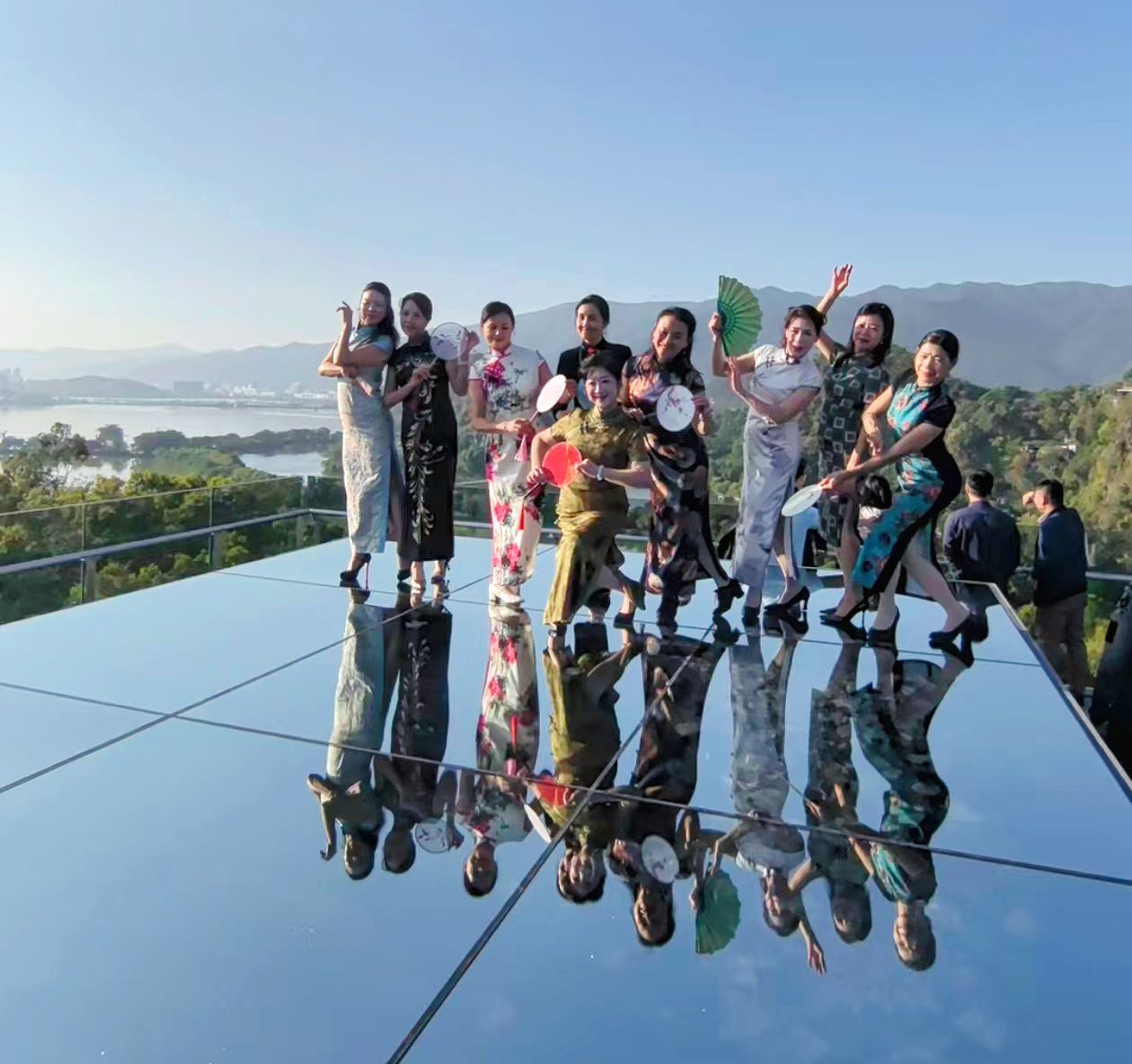 游客们在象岗绿美点新打造的“天空之境”留影