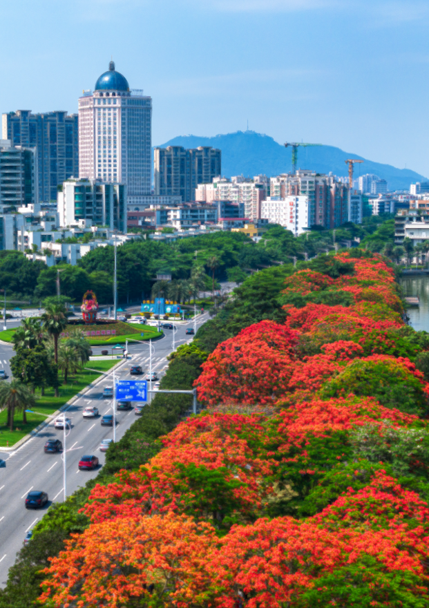肇庆街头的凤凰花绚烂绽放