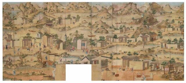 清乾隆广州手绘农耕商贸图外销壁纸
