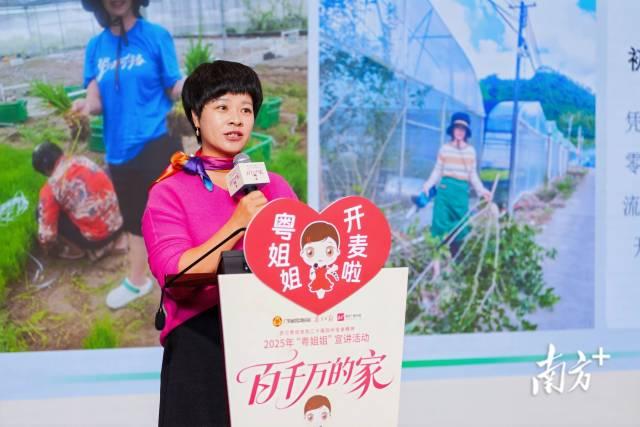 “百千万的家”征集展示活动获奖代表、梅州市客都菜娘子农业有限公司总经理冯双玲分享了作品《从一棵菜到一个家》背后的故事。十年前,冯双玲投身种植业,开始了攻克水培菜技术的艰难道路。其间,她遭遇过台风水灾,也曾因亏损巨大而跌入低谷。