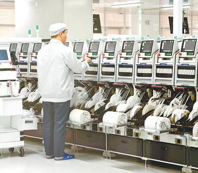 “哪台机、哪种物料不足了,系统会自动反馈,帮着设定一条最优的补料顺序和线路,工作人员不用再像以前一样走来走去、靠肉眼巡查。每次补料时,用手持终端一扫物料上的编码,比对不上就会报警;就算错装或漏装,贴片机也会自动识别、停机。”在这条产线上工作了6年的伍广华感慨,以前这个岗位的工人要培训3个月才能上岗,现在只需3到7天,“干起活来轻松多了。”