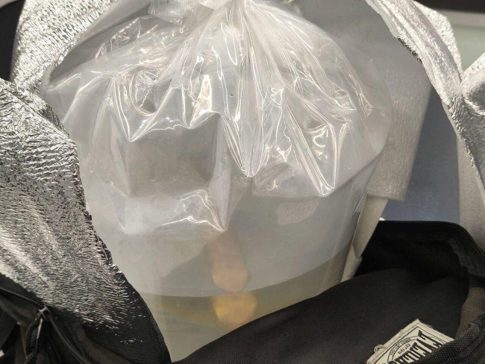 皇岗海关关员在福田口岸对出境旅客及其行李物品进行监管时,发现一名女性旅客进入海关监管区未向海关申报,且其随身携带的手拖车和背包机检图像异常,海关关员随即对其进行拦截检查。经进一步检查,海关关员分别在该旅客携带的背包及手拖车上的两个袋子内发现充气注水的透明塑料袋各1个,每袋中均装有活体鱼1条,共计3条。