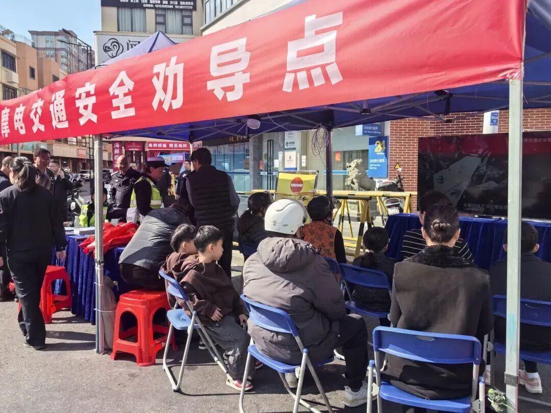 汕尾交警构建从源头销售到路面秩序、宣传教育的全链条治理格局,全面加强重点区域、重点场所的执勤劝导,在全市主要路口共设置了61个交通安全劝导点,推行“查处+教育”模式,组织违法当事人现场观看警示教育片、参与劝导体验,提升群众安全意识。