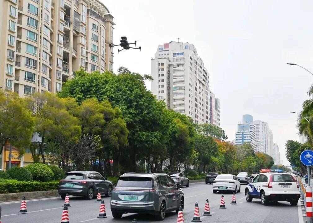 深圳交警持续推行“空地联动”+“链路式”执法模式,重点针对电动自行车各类交通违法行为。行动覆盖全市主干道、快速路、交通场站周边、地铁口周边等重点区域、路段。严查电动自行车闯红灯、逆行、走机动车道、非法改装、不戴头盔等不文明违法行为。行动中,交警启用多架无人机,通过“空中喊话”引导电动车驾驶人安全文明驾驶,路面交警根据无人机发现的违法信息同步展开现场查处,形成“空地联动”+“链路式”执法模式。
