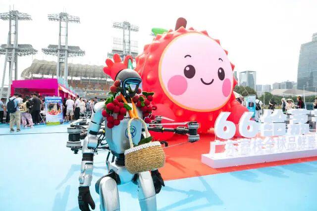 6月6日,由广东省委宣传部指导,广东省农业农村厅等单位主办的首届“6·6给荔节”在广州启幕。现场机器人派送荔枝引发围观。(吴秒衡 摄)