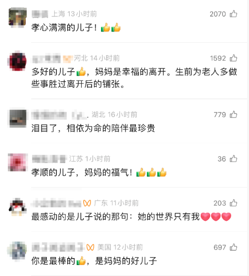 “好感人!孝心满满的儿子!”