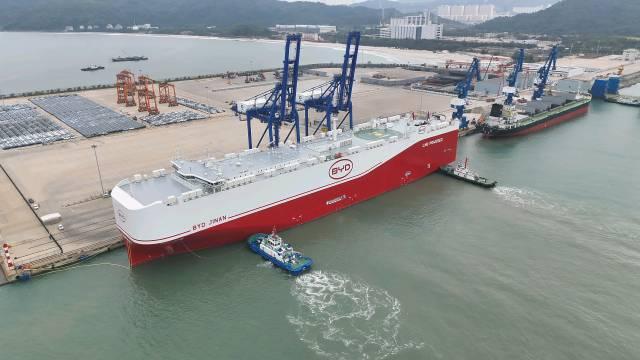 近期以来,小漠国际物流港越发繁忙。去年12月27日,小漠港区迎来具有里程碑意义的首次LNG(液化天然气)加注作业。此次现场加注作业由中海油(深圳)国际船舶清洁能源有限公司负责,采用“车对船”的方式,为比亚迪“济南号”汽车滚装船“加力赋能”。后者随即搭载年底最后一批国产汽车启程前往欧洲。此次LNG首加落地实施,将有利于强化小漠港打造国际汽车贸易枢纽中心的能源保障能力,标志着深圳港绿色航运服务能力迈上新台阶。同时进一步推动深汕“零部件+整车+出口”产业链加快成型,为深圳加快打造新一代世界一流汽车城注入新动能。