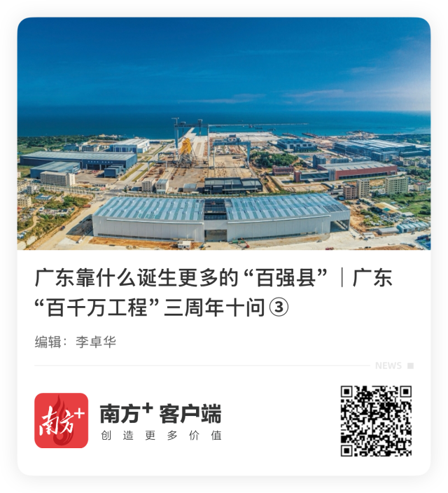 三问:2022年,57个县(市)以71.7%的土地面积,只贡献了全省12.39%的地区生产总值。广东怎样抓住县域这个关键,诞生更多的“百强县”,为再造一个新广东提供强力支撑?