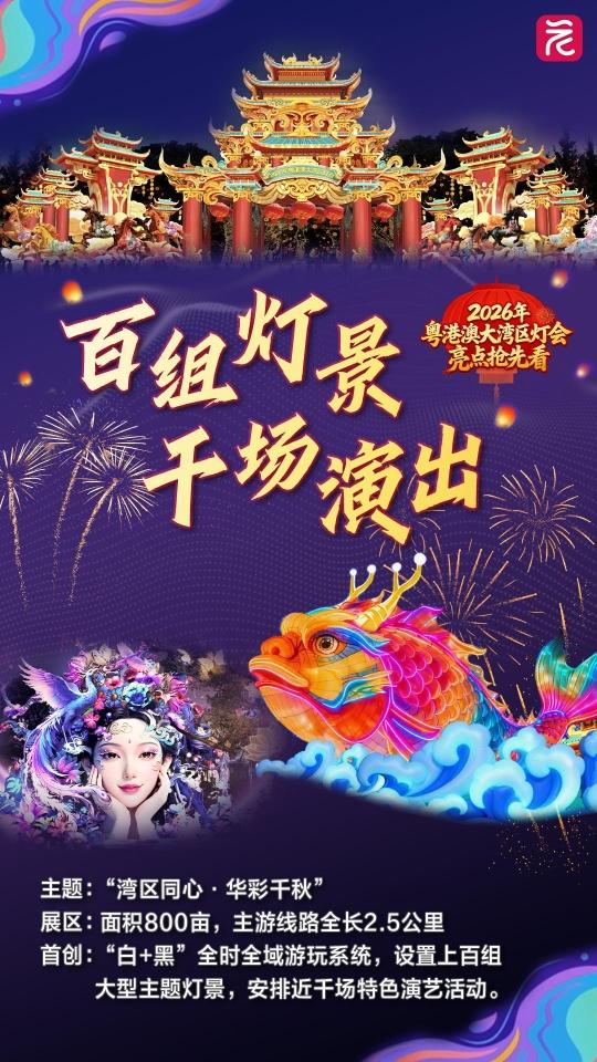 据了解,由省市宣传、文旅部门大力支持,广州市南沙区主办的2026年粤港澳大湾区灯会,将于2月10日至5月10日在广州南沙湾片区精彩亮相,展期90天。