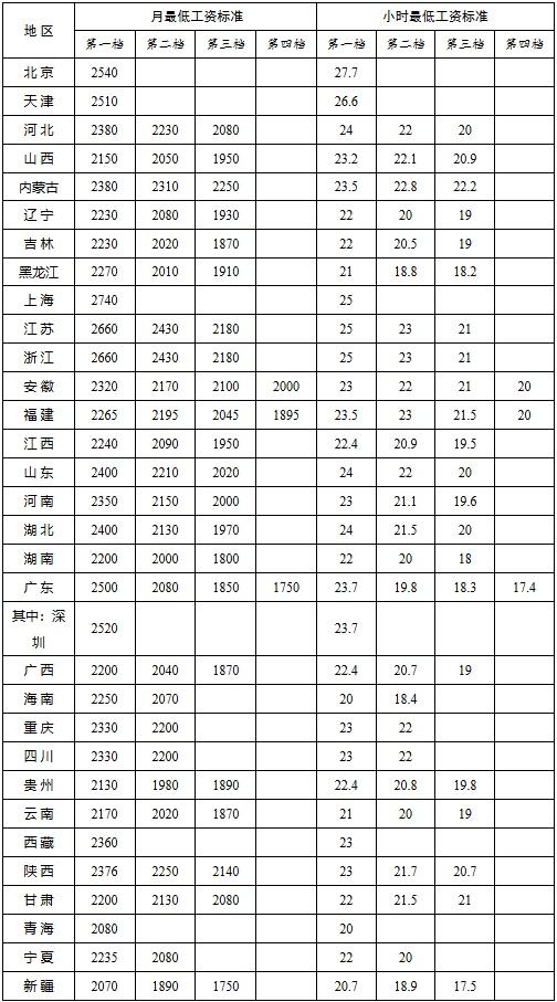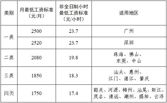 广东省月最低工资标准方面