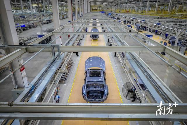深汕比亚迪汽车工业园新能源汽车生产线。