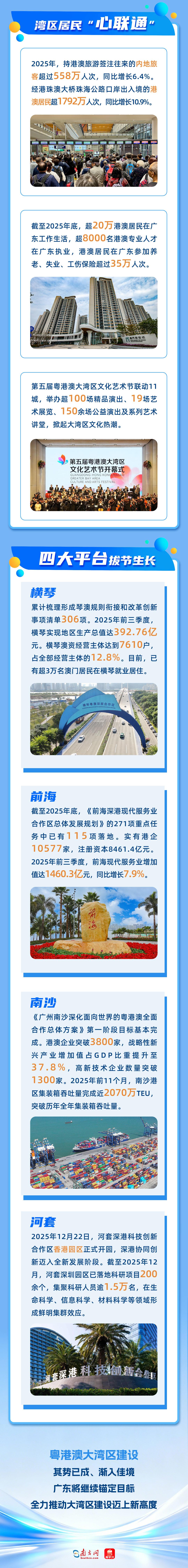 建设粤港澳大湾区,是习近平总书记亲自谋划、亲自部署、亲自推动的重大国家战略。2025年,广东紧密携手港澳,锚定建设富有活力和国际竞争力的一流湾区和世界级城市群的目标,同心同行、稳扎稳打,推动大湾区融合发展取得新成效。