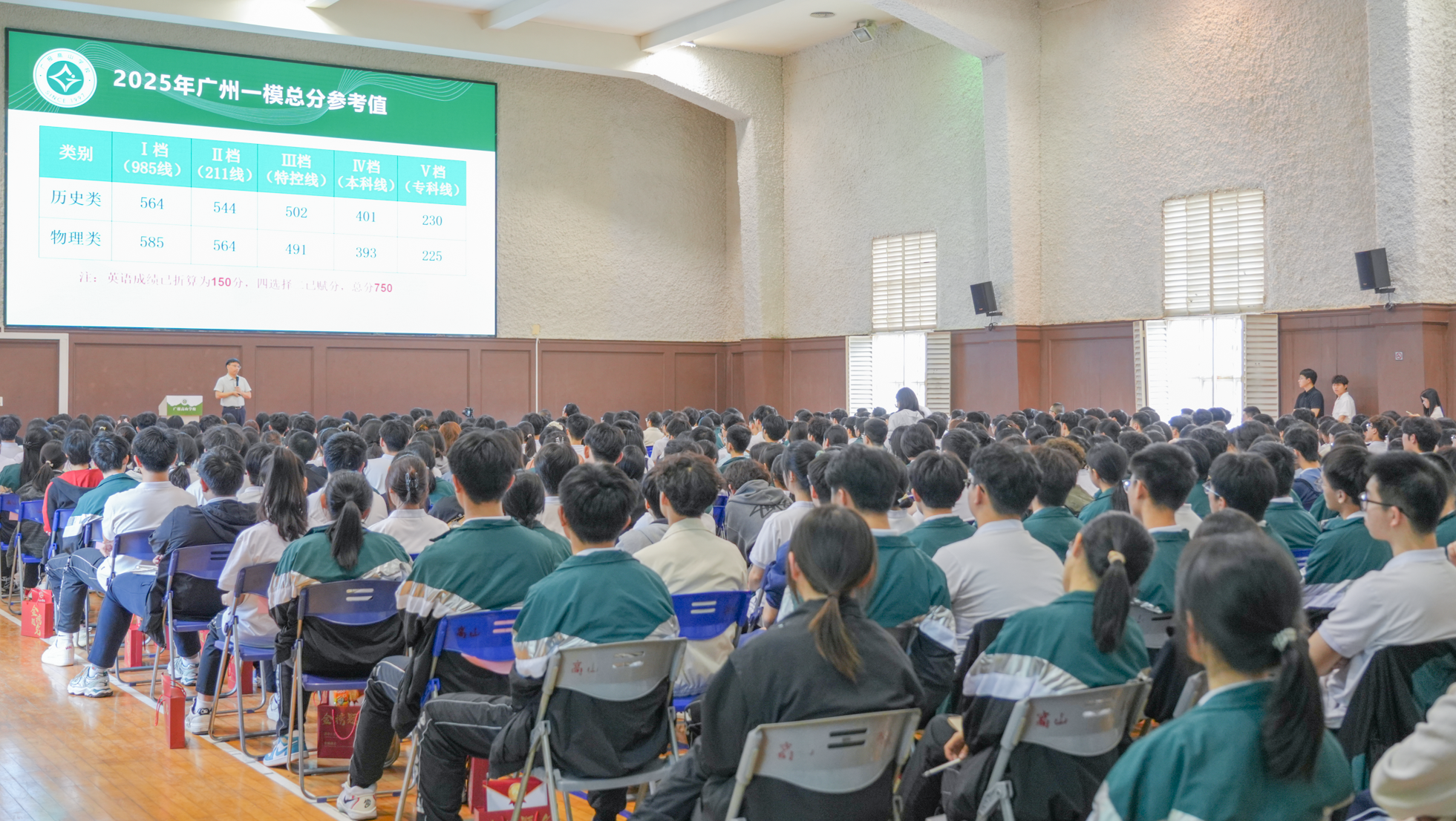 2025年3月27日,广报高山学校召开2025届广州一模表彰大会,本次广州一模广报高山七成艺体类学子总分超过300分,较去年同期大幅提升。