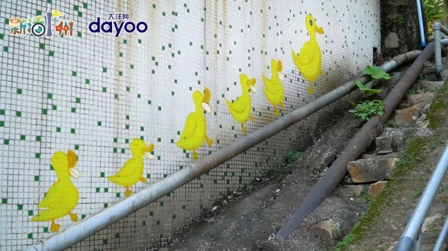 房屋墙面上的彩绘鸭子。袁世杰摄