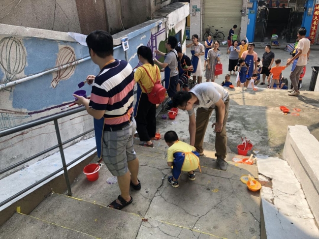 据了解,南北台社区大大小小的彩绘一共有七十多处,有的彩绘设计来自社区里小朋友之手,他们为了让自己的社区变得更加有趣多彩,进行了奇思妙想,最后看到自己的作品呈现出来,心中都感到无比的喜悦。值得一提的是,在彩绘楼梯的创作中,社区居民齐齐参与,在职党员和社区居民共40对亲子家庭对南虹路进行粉刷改造,扮靓自己的家园。