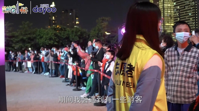 指引疏导工作看似简单低调,但14天的志愿服务让陈庆广有了深刻体会:“广州灯光节的人流量是很大的,所以我们的疏导变得十分重要。比如一些很着急的游客,经过我们的疏导,他会慢慢缓解自己的情绪,更加有秩序地去观看灯光节。”
