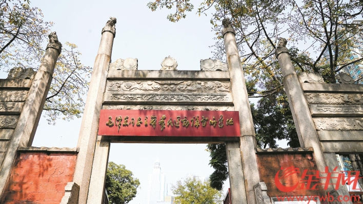 穿过纪念馆门楼,黄色的“番禺学宫”四个字悬挂在红色的屋檐上,农讲所原为番禺学宫,从唐朝全面推行科举考试开始,学宫实行庙学合一制度,这里既是祭祀孔子的地方,也是学子求学的场所。
