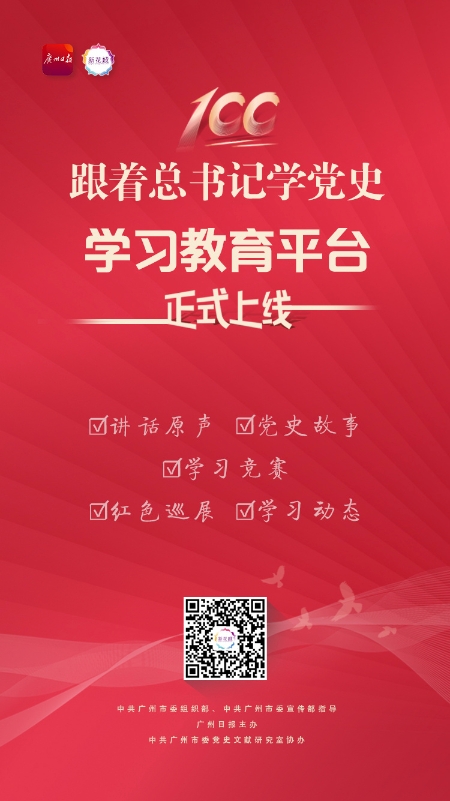 广州市区融媒体中心客户端新花城和广州日报“学习强国号”正式上线“跟着总书记学党史”学习教育平台,以生动丰富的精品内容和立体多元的传播矩阵为全市党员干部打造党史“大学习”阵地。