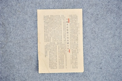 中国共产党第三次全国大(会)宣言。(中共三大会址纪念馆提供)